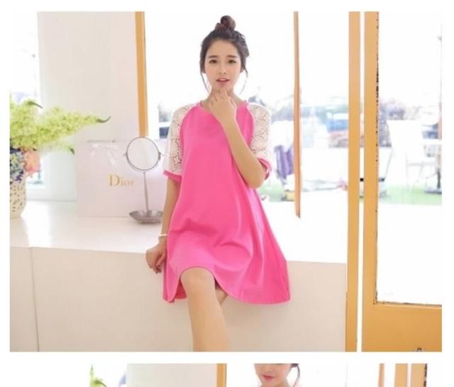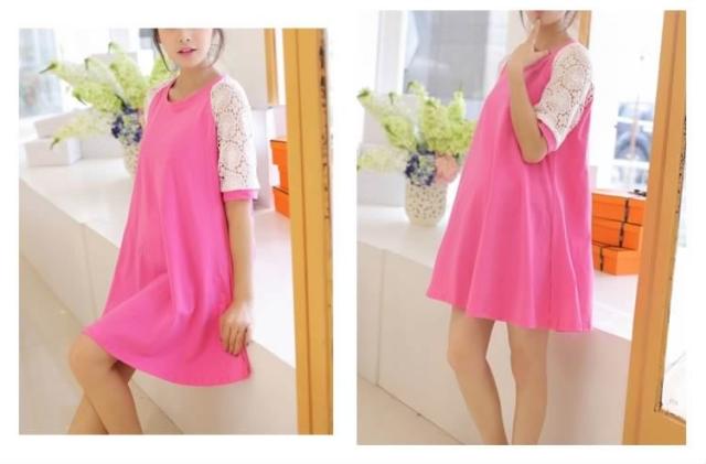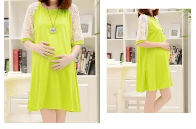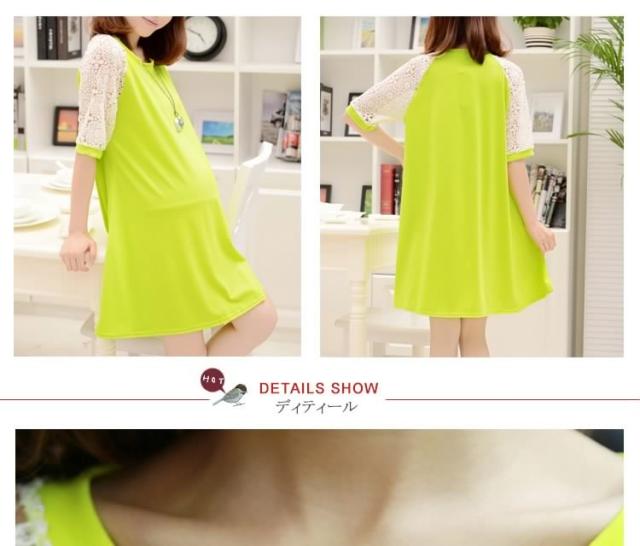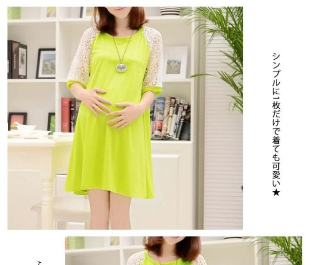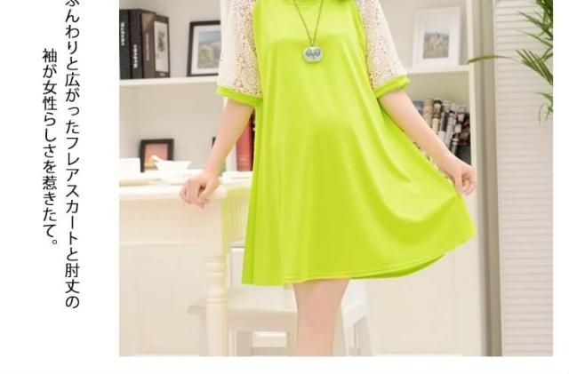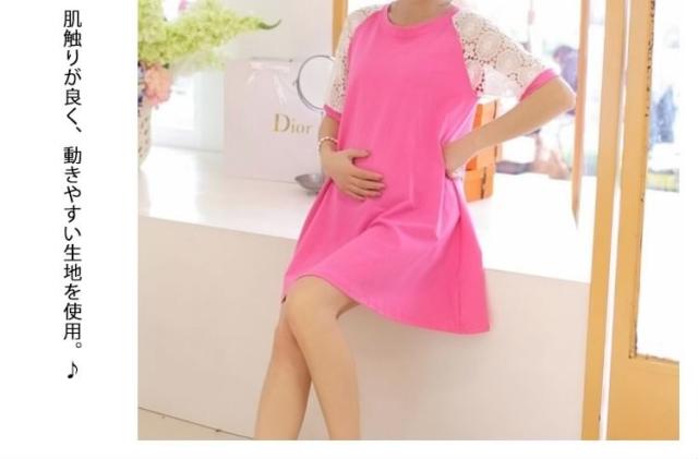 マタニティドレス フレアワンピース スウェットワンピース ショート レース切り替えワンピース 七分袖 妊娠服 婦人服 夏服 普段着