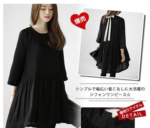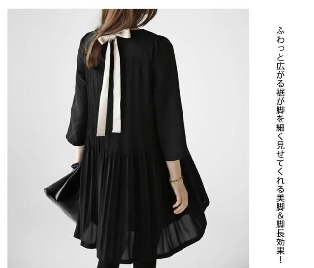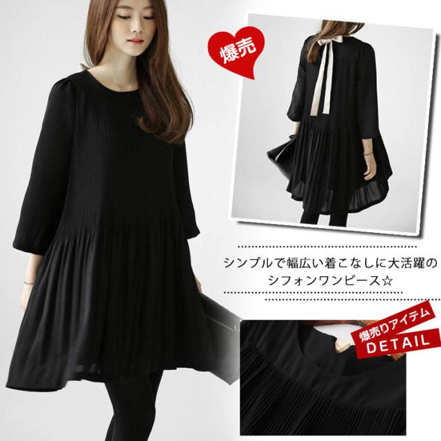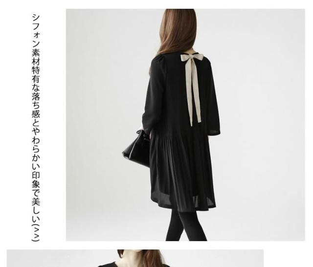 マタニティ ワンピース ショート フリルワンピース 長袖ワンピース シフォンワンピース 春ワンピース バックリボン付き ゆったりワンピ