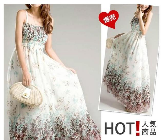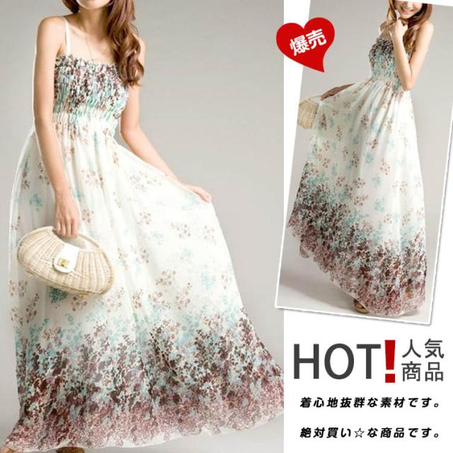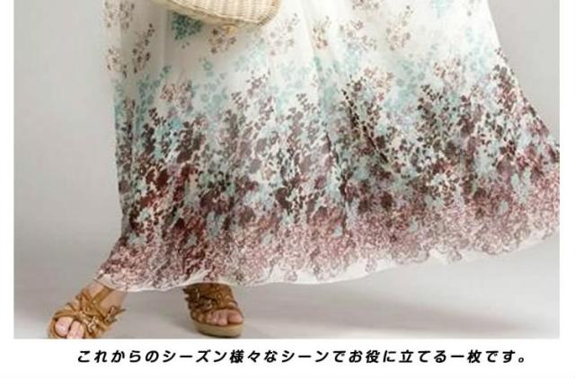 マキシワンピース 花柄 シフォン ゴム