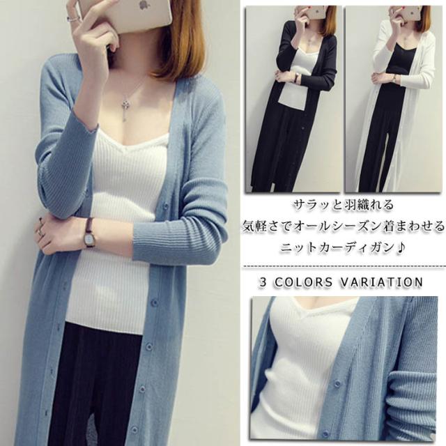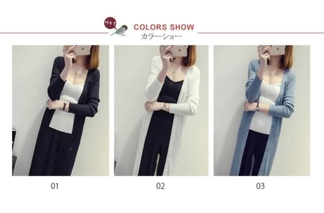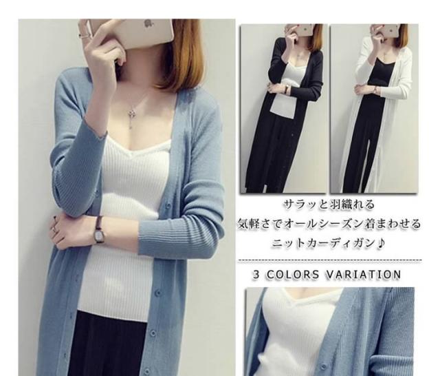 カーデ マキシカーディガン レディース 長袖 薄手カーディガン ニットカーディガン サマーカーディガン 冷房対策 無地カーデ シンプル 2017春