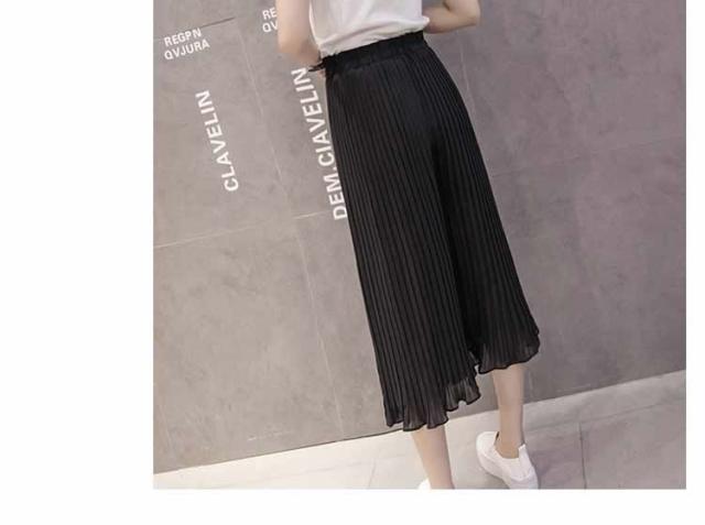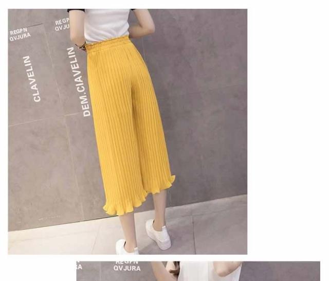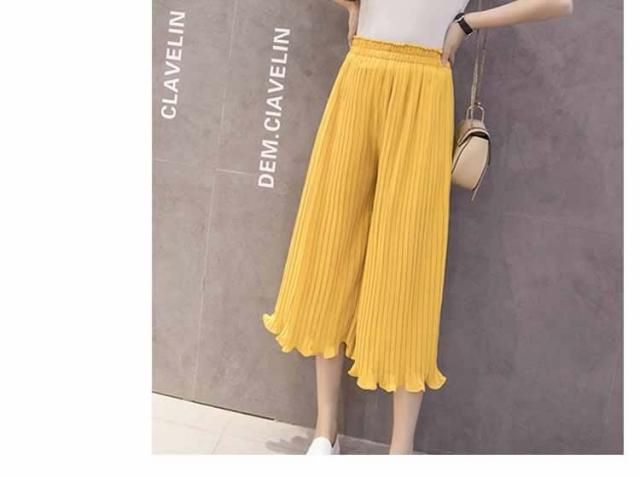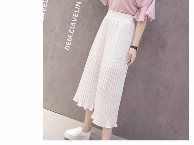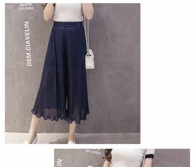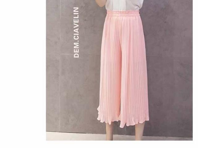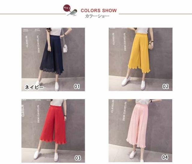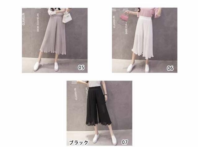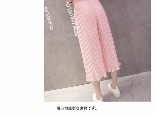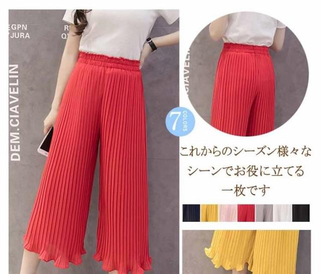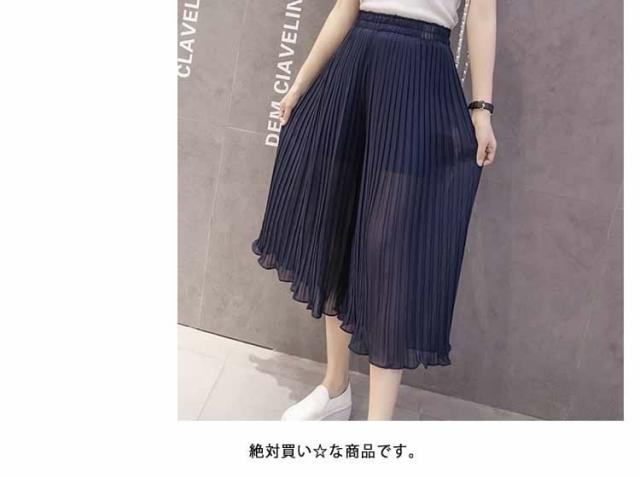 ガウチョパンツ ワイドパンツ プリーツ シフォン ゴム 春夏