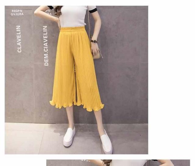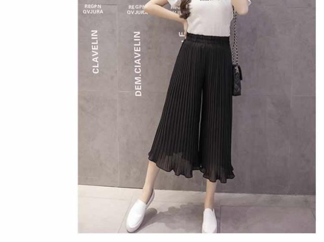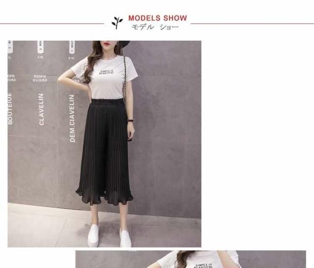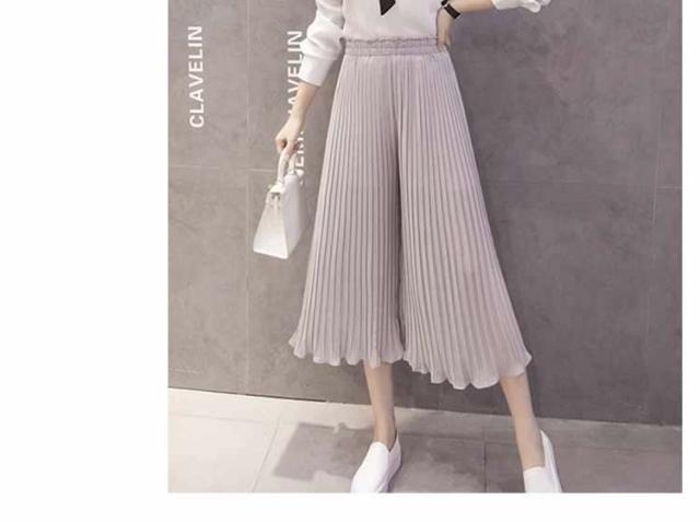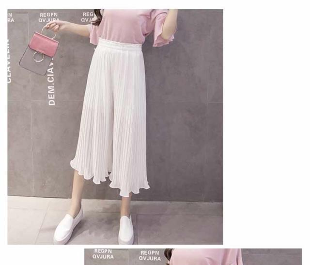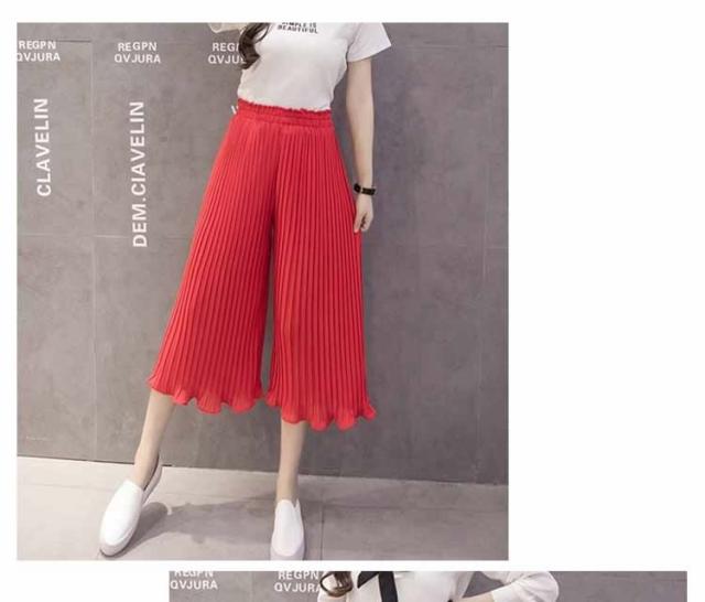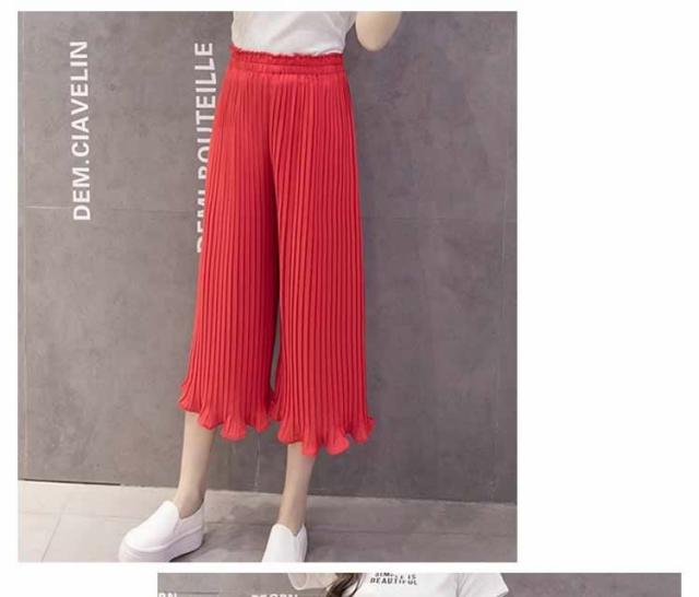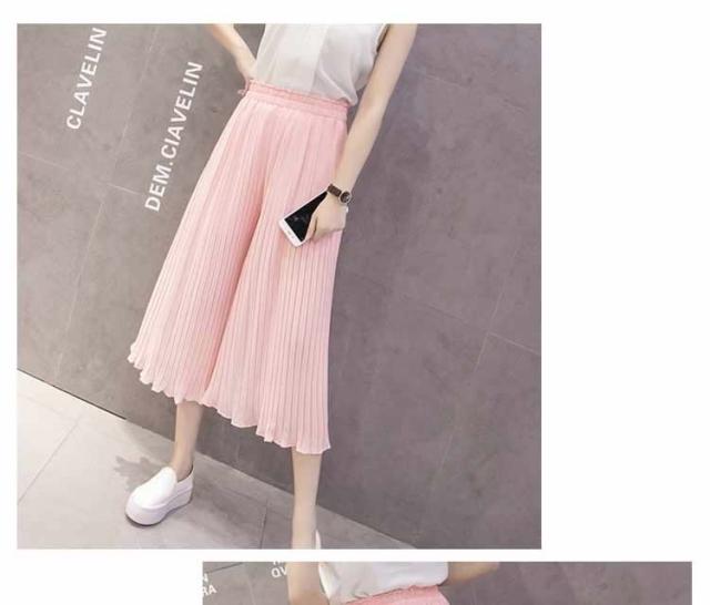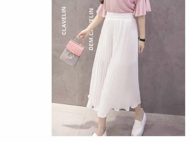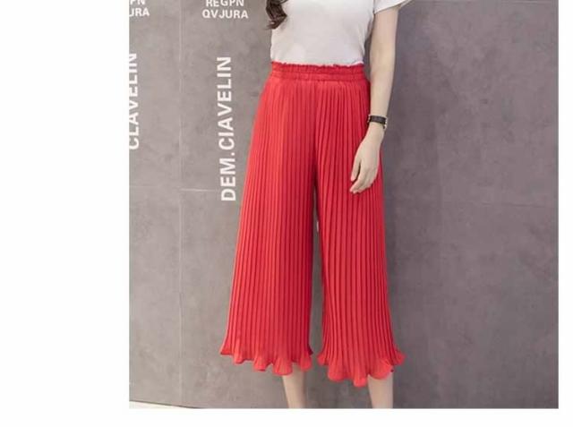 ガウチョパンツ ワイドパンツ プリーツ シフォン ゴム 春夏