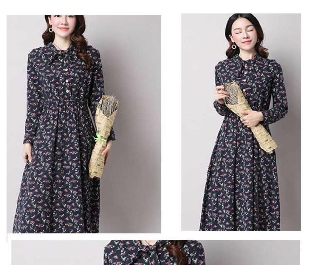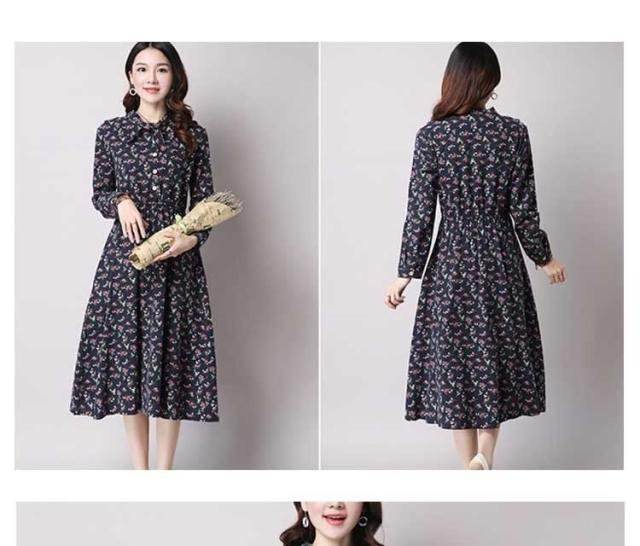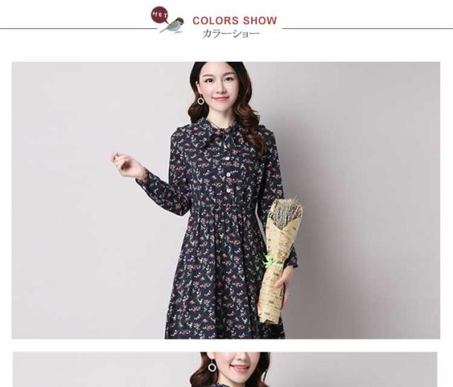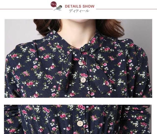 綿麻ワンピース プリントワンピース ロング フレアワンピース シャツワンピース ナチュラル風ワンピース 森ガール系 Aラインワンピース リボン