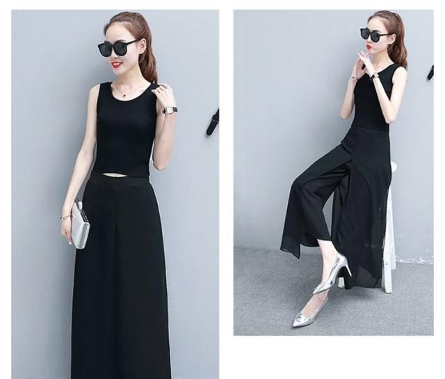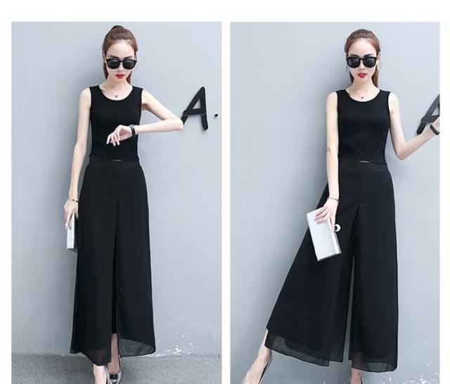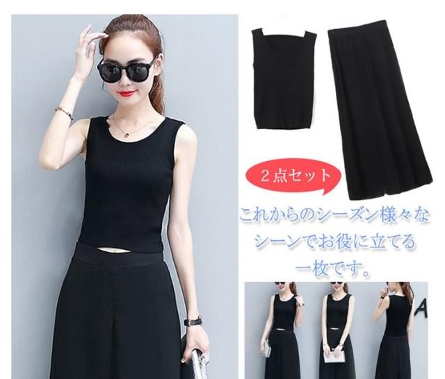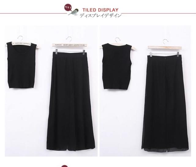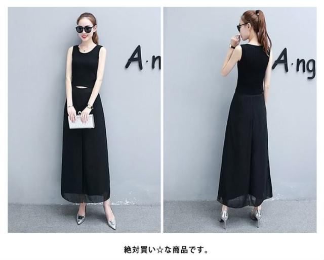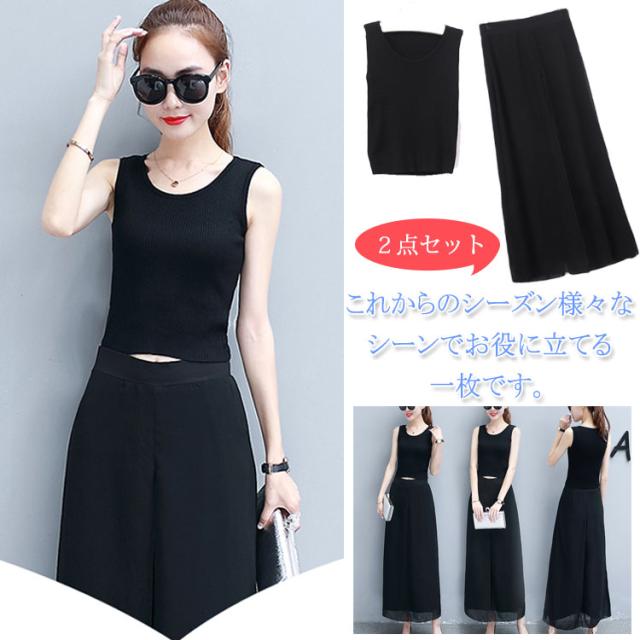 セット チュニック ガウチョパンツ シフォン ノースリーブ 夏