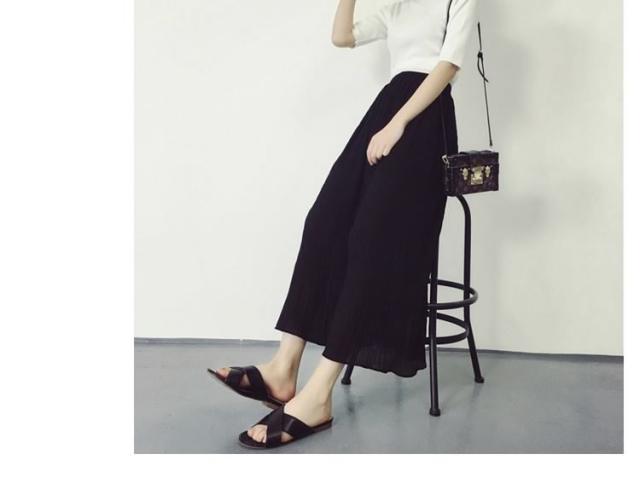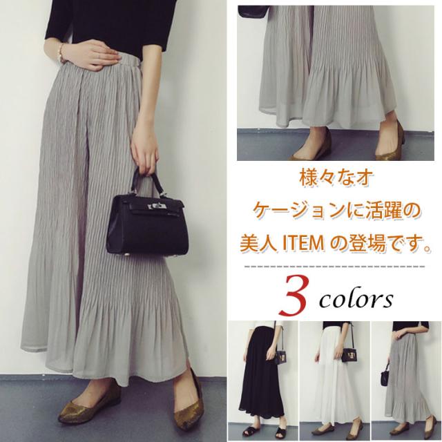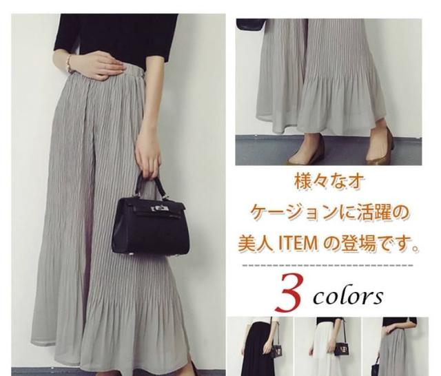 ガウチョパンツシフォン プリーツ美脚
