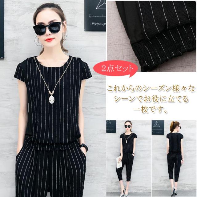 セットアップ ストライプ トップス パンツ レディース