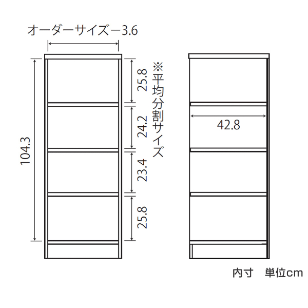 オーダー本棚 標準棚板 幅30-44cm 奥行46cm 高さ117cm ( 収納棚 書棚 本棚 オーダー ラック 壁面収納 書庫 日本製 オーダーメイド 文庫本 コミック フリーラック )