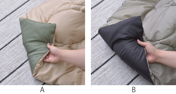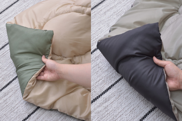 生地は両面使用できるリバーシブル仕様になっています。お部屋の雰囲気や、その日の気分によって変えてお使いください。