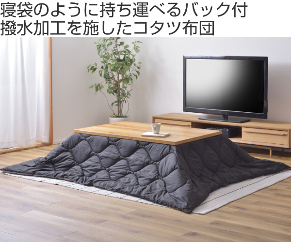 寝袋のように持ち運べるバッグ付きの撥水加工を施したコタツ布団