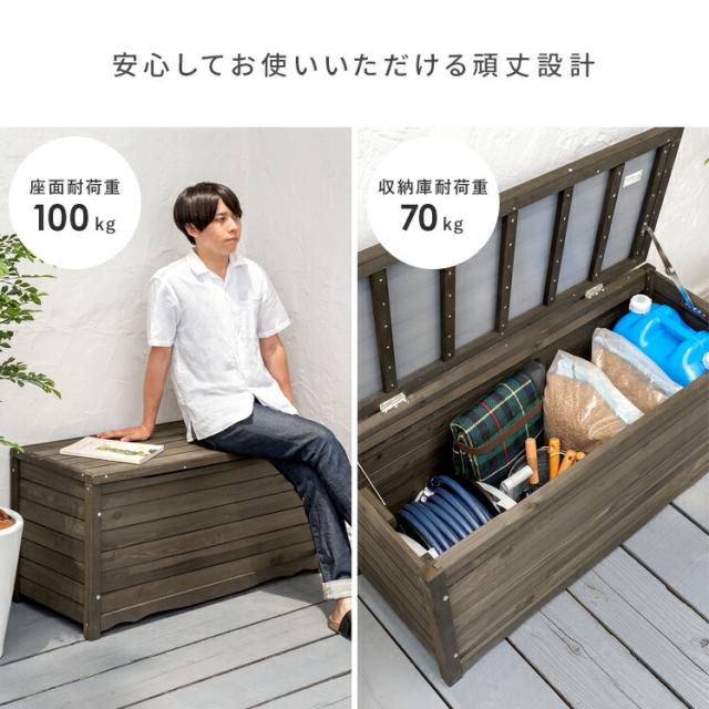 ガーデンベンチ 収納 木製 屋外 大容量 収納庫 ポリタンク ストッカー フタ付き ベランダ 物入れ おしゃれ 庭 ガーデン テラス 収納付き ベンチ 椅子 腰掛 イス 収納ボックス 天然木ベンチストッカー Cotel〔コテル〕幅106cmタイプ