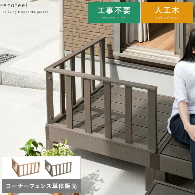 縁台 ウッドデッキ デッキ縁台 縁側 ベランダ 屋外 ベンチ 野外 収納 庭 テラス お洒落 ガーデン ガーデニング カントリー ライトブラウン ダークブラウン 人工木ウッドデッキ ecofeel(エコフィール)コーナーフェンス単体販売