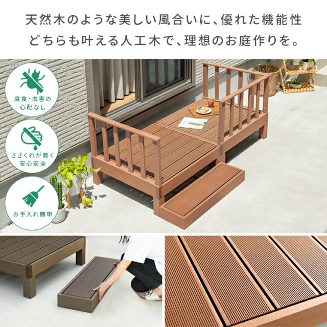 縁台 ウッドデッキ デッキ縁台 縁側 ベランダ 屋外 ベンチ 野外 収納 庭 テラス お洒落 ガーデン ガーデニング カントリー ライトブラウン ダークブラウン 人工木ウッドデッキ ecofeel(エコフィール)ストレートフェンス単体販売