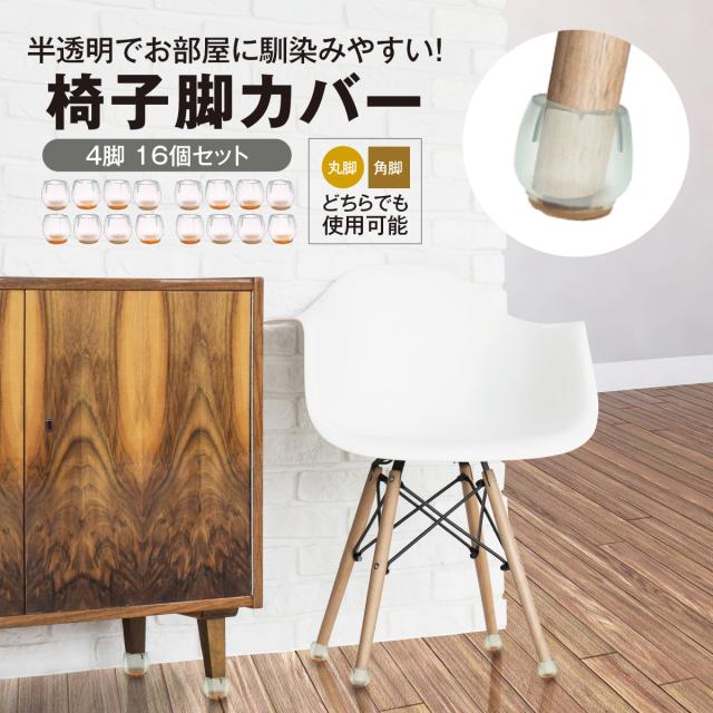 椅子 脚 足 カバー 16個 4席分 セット シリコン製 クリア フローリング カバー 畳 傷防止 床保護 ずれにくい 簡単装着 椅子 カバー 便利アイテム インテリア f-cover
