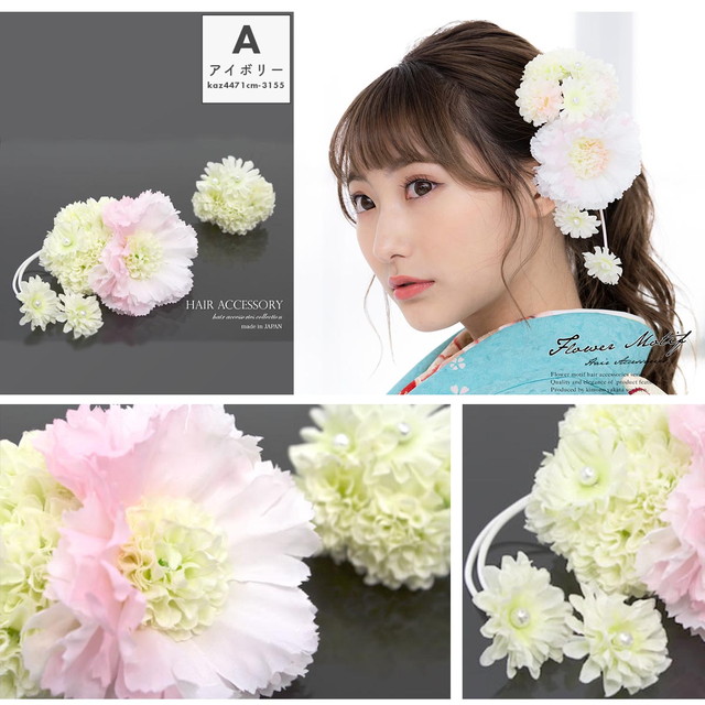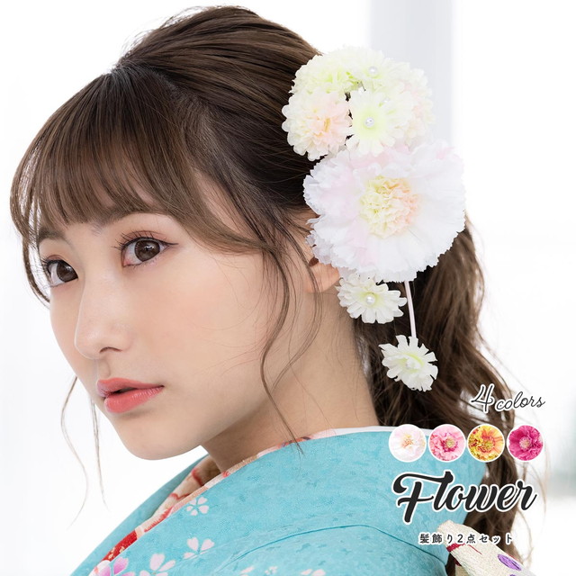 成人式 髪飾り 成人式の髪飾り 花 2点セット アイボリー ピンク 黄色 紫系 牡丹 雛菊 ぶら飾り 着物 髪飾り 着物 婚礼 和服 髪留め 和装 送料無料