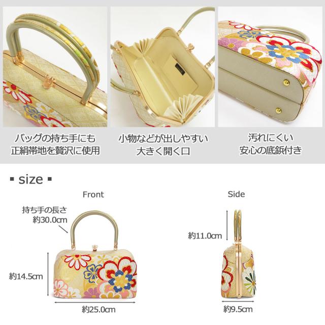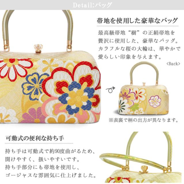 京都西陣“樹”の正絹帯地をふんだんに使用し、華やかな桜柄が美しい豪華なバッグに仕上げました。