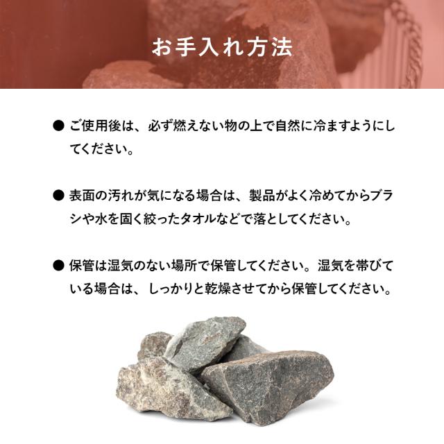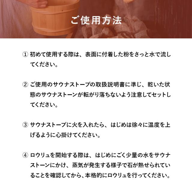 ●このサウナストーンは蓄熱性の高い火成岩(火山岩)の中でも特に強度の高い玄武岩を使用。
