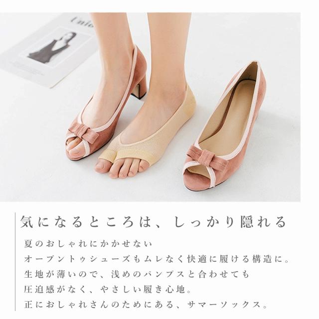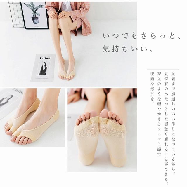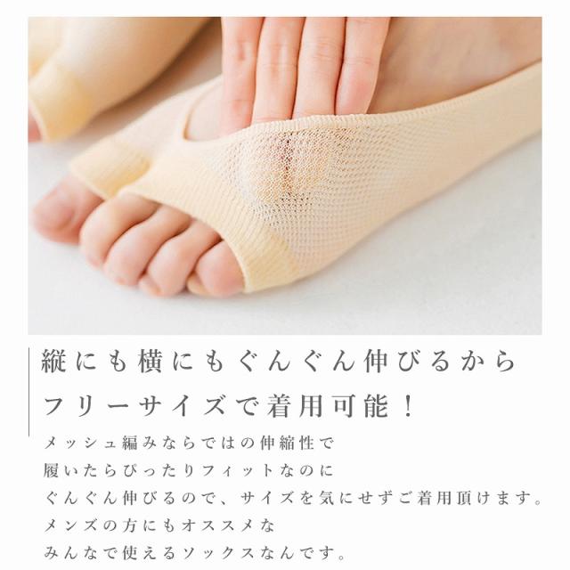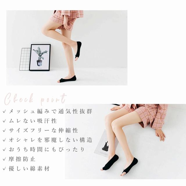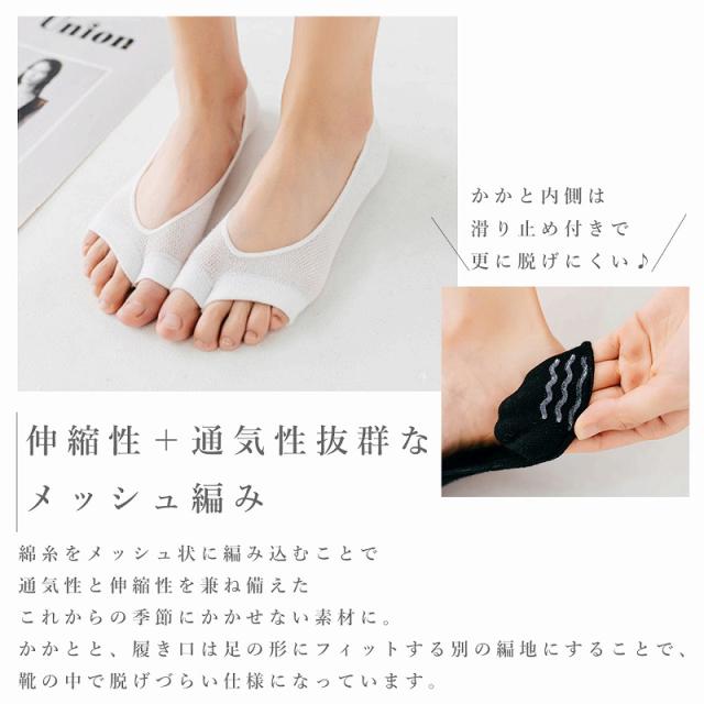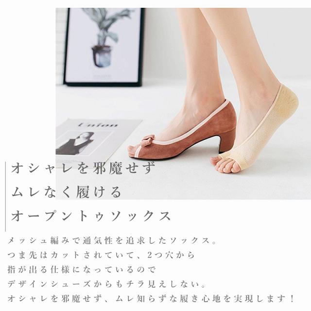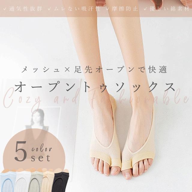 送料無料 オープントゥソックス 5色組 靴下 メッシュ 綿 薄手