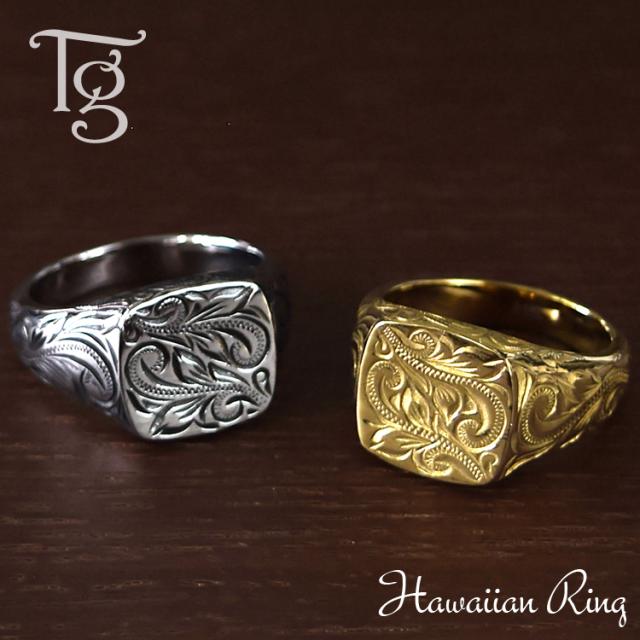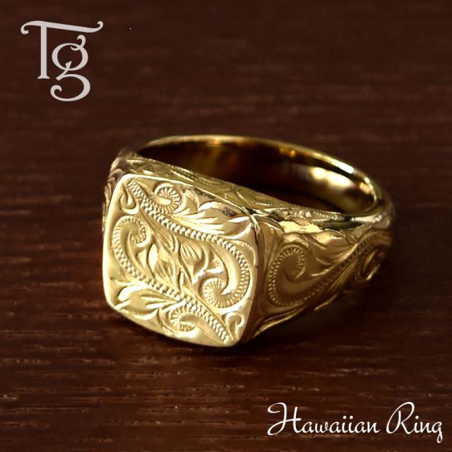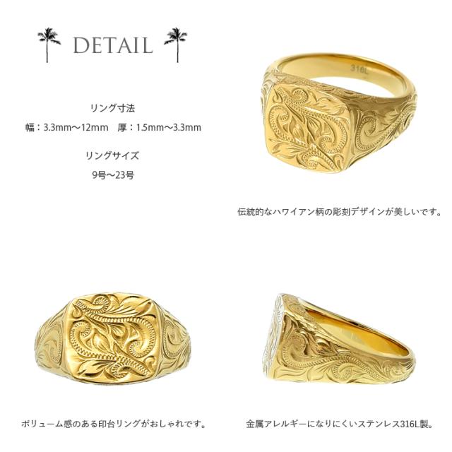 ハワイアン リング レディース メンズ 男女兼用 刻印 ステンレス 印台リング 指輪 ランキング ギフト プレゼント 誕生日 記念日 ホワイトデー クリスマス【イエローゴールドカラー】