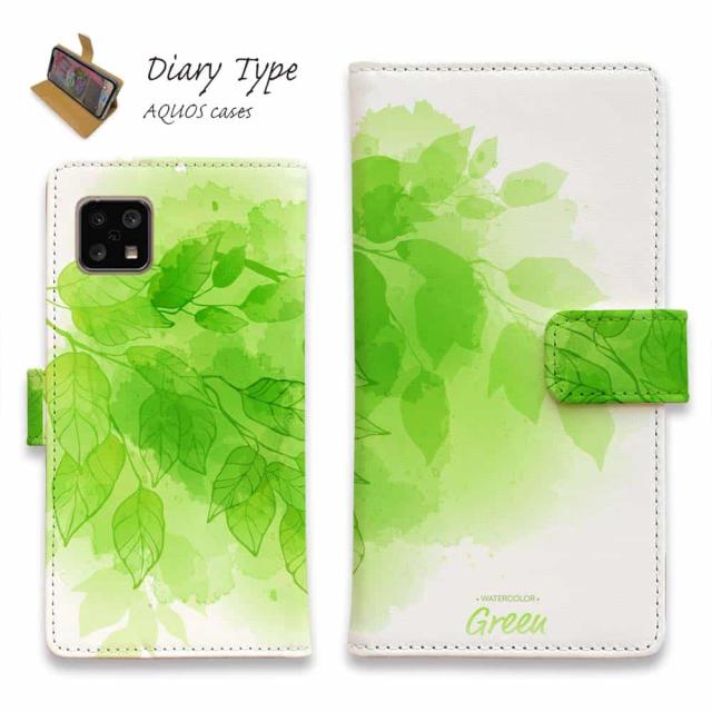 AQUOS sense10 アクオス センス10 スマホケース 手帳型 マグネット カード収納 AQUOS sense9 sense8 R9 R8 Pro wish4 wish3 sense7 plus ケース sense6 sense4 アクオス ケース 花 花柄 ウォーターカラー・グリーン