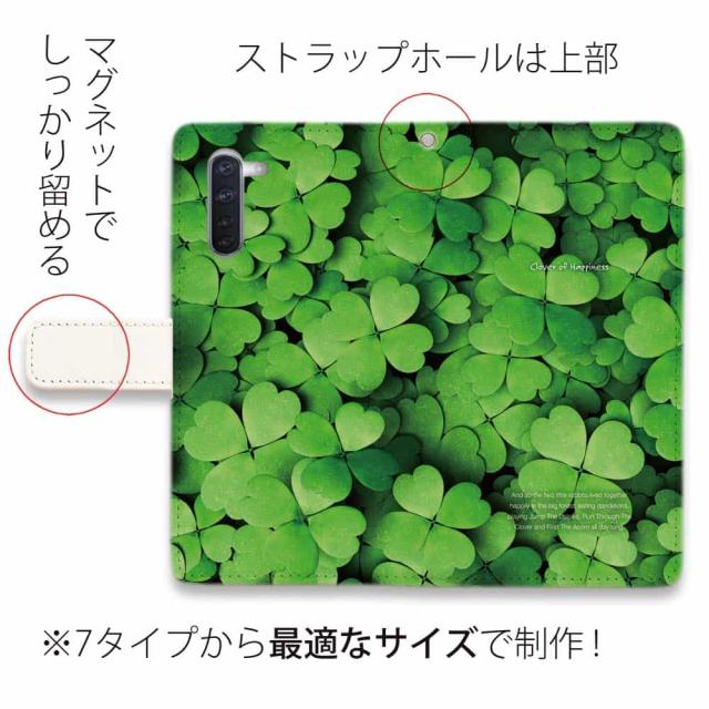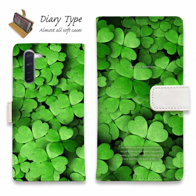 Android スマホケース 手帳型 マグネット カード収納 OPPO Reno5 A OPPO Reno3 A Android One S8 ケース シンプルスマホ6 らくらくスマートフォン LG V60 ThinQ xiaomi mi URBANO アンドロイド ケース 花 花柄 きれい かわいい 幸せのクローバー
