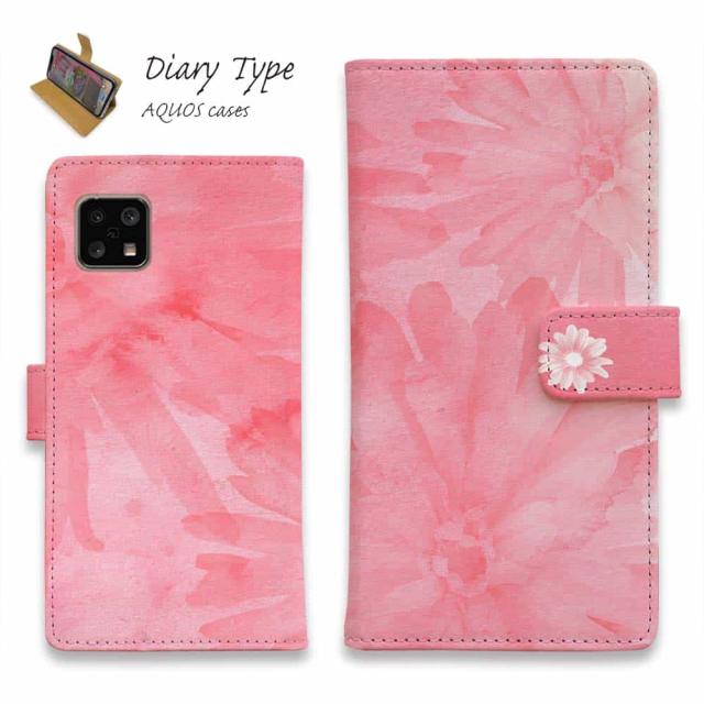AQUOS sense10 アクオス センス10 スマホケース 手帳型 マグネット カード収納 AQUOS sense9 sense8 R9 R8 Pro wish4 wish3 sense7 plus ケース sense6 sense4 アクオス ケース 花 花柄 ウォーターフラワー ピンク