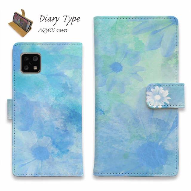 AQUOS sense10 アクオス センス10 スマホケース 手帳型 マグネット カード収納 AQUOS sense9 sense8 R9 R8 Pro wish4 wish3 sense7 plus ケース sense6 sense4 アクオス ケース 花 花柄 ウォーターフラワー ブルー