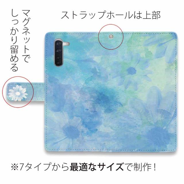 Android スマホケース 手帳型 マグネット カード収納 OPPO Reno5 A OPPO Reno3 A Android One S8 ケース シンプルスマホ6 らくらくスマートフォン LG V60 ThinQ xiaomi mi URBANO アンドロイド ケース 花 花柄 きれい かわいい ウォーターフラワー ブルー