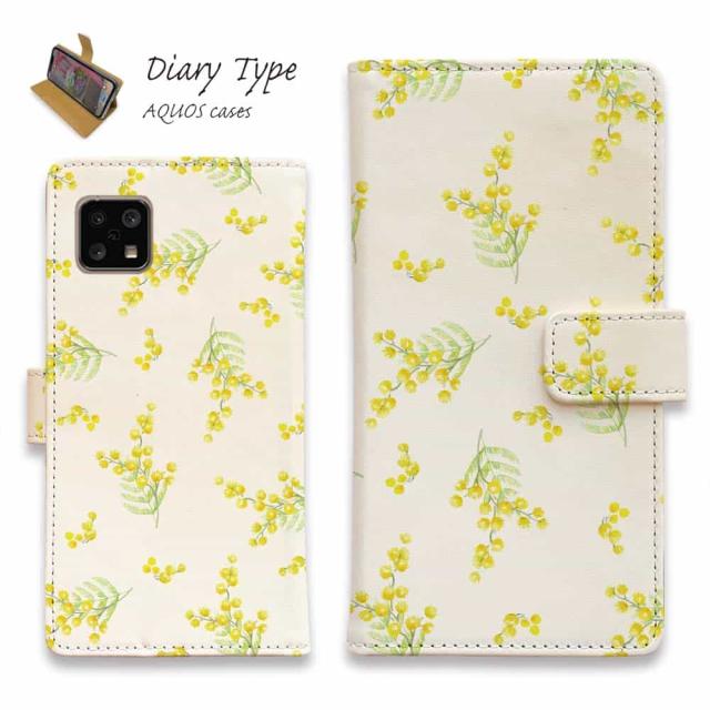 AQUOS sense10 アクオス センス10 スマホケース 手帳型 マグネット カード収納 AQUOS sense9 sense8 R9 R8 Pro wish4 wish3 sense7 plus ケース sense6 sense4 アクオス ケース 花 花柄 ミモザ(ホワイト)