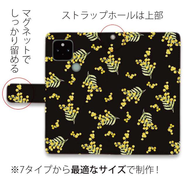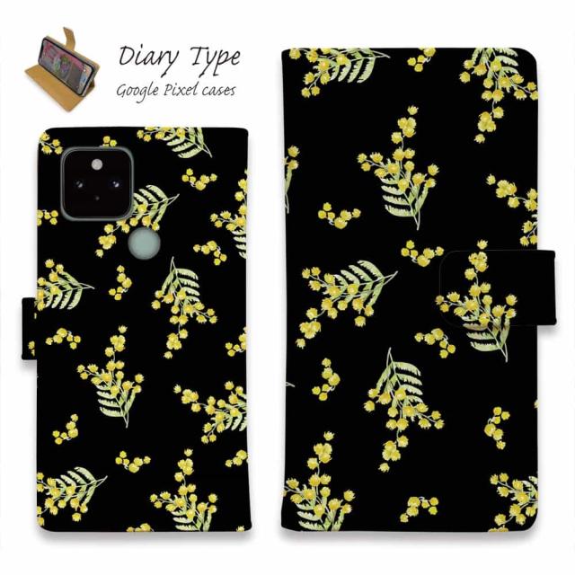 Google Pixel 10 Pro XL ピクセル10 プロ スマホケース 手帳型 マグネット カード収納 Google Pixel9a Pro Google Pixel8a Pro Google Pixel7a Pro Google Pixel6a Google Pixel6 ピクセル ケース 花 花柄 ミモザ(ブラック)