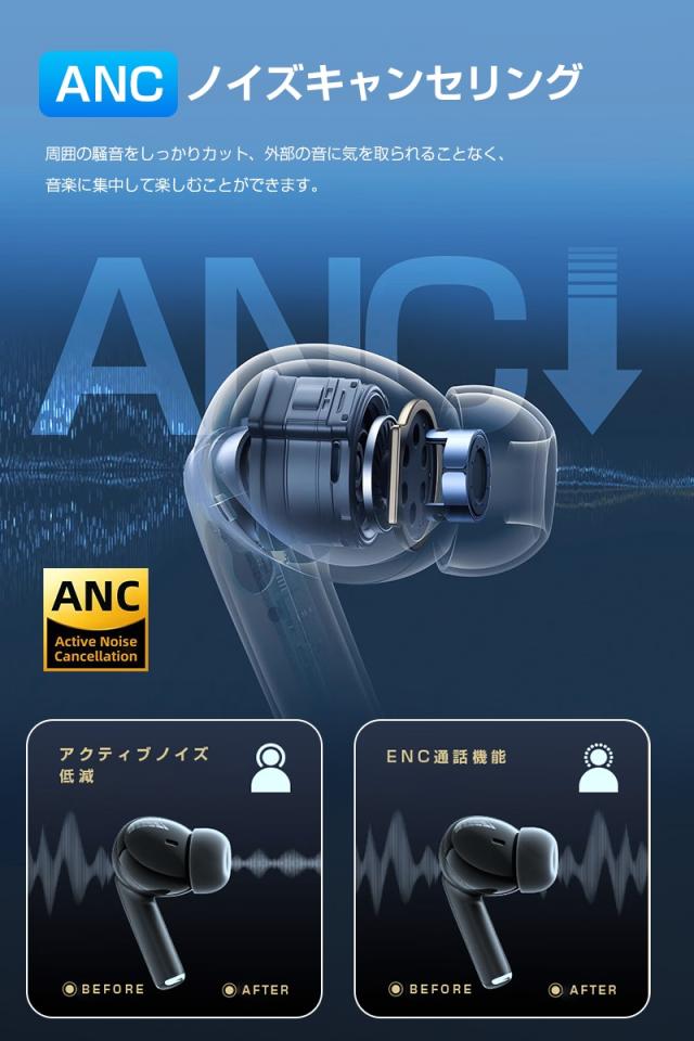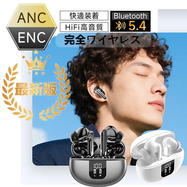 ワイヤレスイヤホン【2025最新】 Bluetooth 5.4 Hi-Fi高音質 ANC+ENCノイズキャンセリング 耳掛け式 ヘッドセット 自動ペアリング 左右分離型 両耳