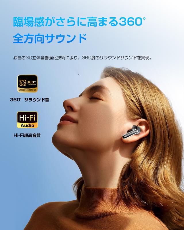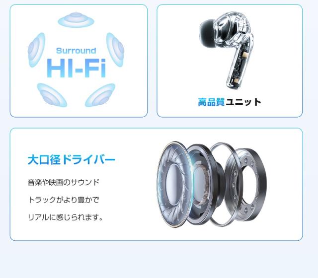 HiFi音質を実現し、深みのある豊かなサウンドを提供します。特にクジラ腔設計を採用しており、音の響きが耳に心地よく届き、低音から高音までバランスの良い音域を再現します。ステレオサウンド技術によって、臨場感溢れる音楽体験が可能になり、どんなジャンルの音楽でも細かい音のニュアンスまでしっかりと聴き取れます。音楽や映画、ゲームをよりリアルに楽しむことができ、音質にこだわる方にも満足いただける製品です。