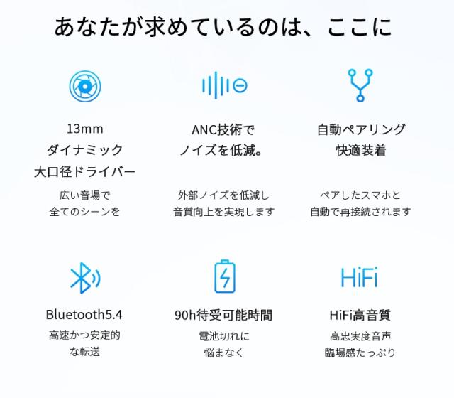 イヤホン ワイヤレス TWSイヤホン bluetoothイヤホン ブルートゥース ヘッドセット マイク付き マイク内蔵 片耳 両耳 左右分離型 ハンズフリー通話 カナル型 音漏れ低減 音漏れしない フィット 耳に負担が少ない 耳が疲れない 快適装着感 心地よいフィット感 軽量 超軽量 ステレオサウンド Hi-Fi高音質 重低音 13mmドライバー 長時間 完全ワイヤレスイヤホン bluetooth5.4 安定 遅延なし ANCノイズキャンセリング クリア通話 ENC 小型 コンパクト 持ち運びに便利 タッチ操作 音声アシスタン Siri対応 LEDディスプレイ 瞬時接続 自動ペアリング Type-C急速充電 スポーツ 汗や雨に強い防水仕様 イヤホンマイク 音量調整 多機種対応 iOS/Android/Windows対応 Xiaomi arrows かんたんスマホ iPhone各種 iPhone16e iPad各種 Android iOS Type-C 各種 Nintendo Switch ソニー Sony Xpeira エクスペリア Samsung サムスン Galaxy HUAWEI Google SHARP シャープ AQUOS スマホ OPPO タブレット ノートパソコン アップル対応 2025最新版 最新モデル 新発売 最新作 性能向上 アップグレード版 ホワイトデー 父の日 母の日 敬老の日 恋人 子供 キッズ プレゼント ギフト 成人の日 成人式 バレンタイン バレンタインデー 卒業式 入学式 クリスマス Xmas 誕生日 還暦祝い お祝い 御中元 お中元 合格 母の日ギフト 父の日ギフト ブラックフライデー クリスマスプレゼント 実用的 おすすめ おしゃれ かわいい かっこいい ブラック ホワイト コスパ 最新 トレーニング 通学 通勤 ランニング 運動 ビジネス WEB会議 送料無料