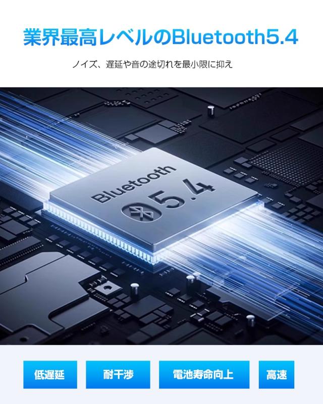 最新のBluetooth 5.4を搭載し、接続の安定性と通信効率が向上。従来のBluetoothよりも低遅延で音楽や通話がクリアに伝わり、接続の途切れや音ズレがほとんどありません。デバイスとの接続もスムーズに行え、ストレスフリーで使用できます。