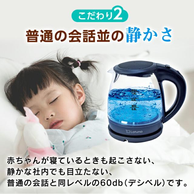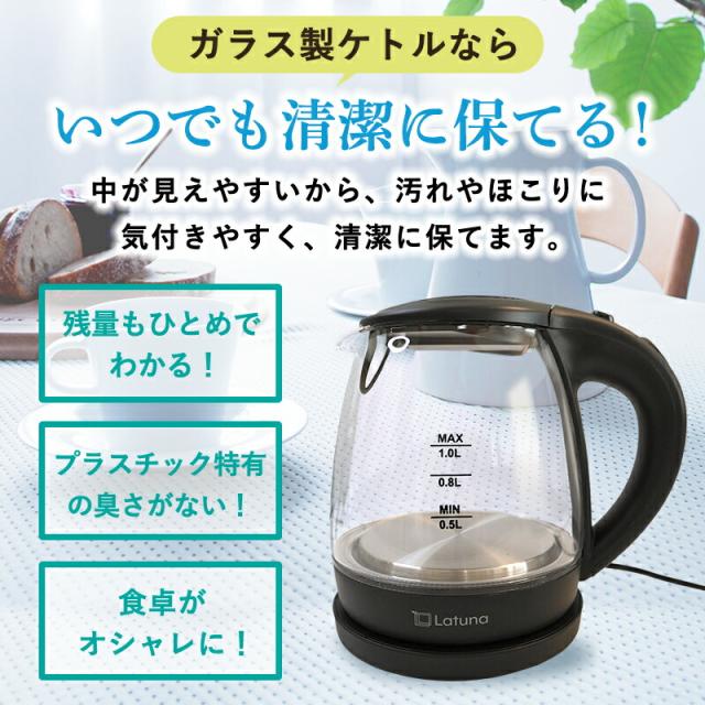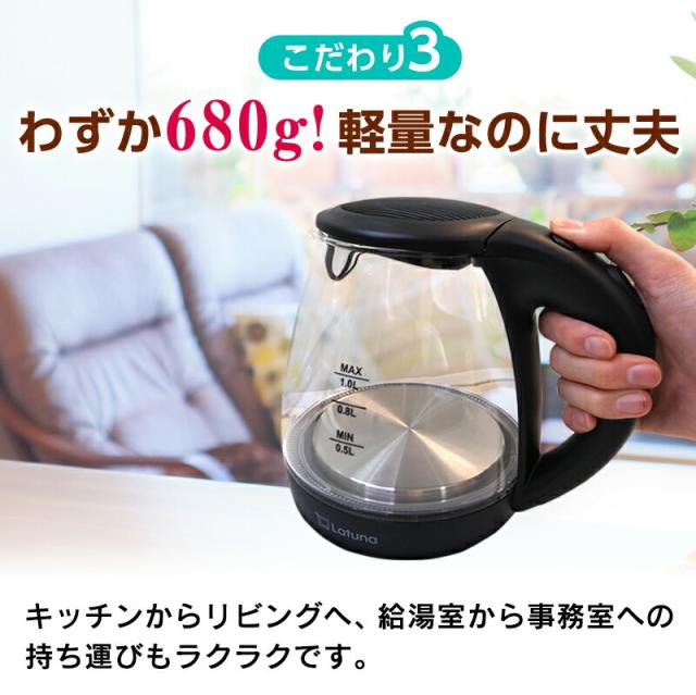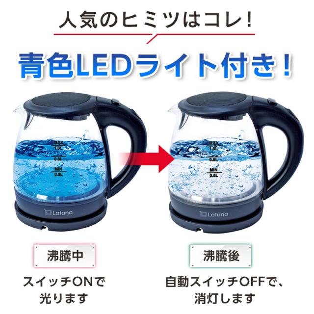Latunaの電気ケトルは、沸騰時にLEDライトが点灯するスタイリッシュな最先端電気ケトルです。