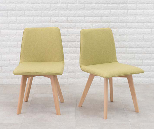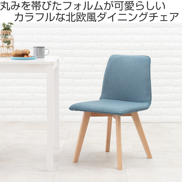 北欧を連想させるハの字脚のデザインで、カラフルなファブリックと丸みを帯びたフォルムが可愛らしいダイニングチェアです。背もたれの高さを低めに設定しているため、圧迫感が軽減されて空間を広く魅せる効果があります。
