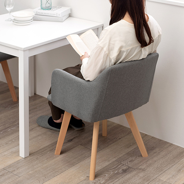 北欧を連想させるハの字脚のデザインで、カラフルなファブリックと丸みを帯びたフォルムが可愛らしいダイニングチェアです。背もたれの高さを低めに設定しているため、圧迫感が軽減されて空間を広く魅せる効果があります。