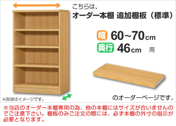 専用追加棚板 オーダー本棚 奥行46cm 本体幅60-70cm用 ( オーダーメイド セミオーダー 奥行46cm用追加棚 幅60-70cm 本棚 収納ラック )