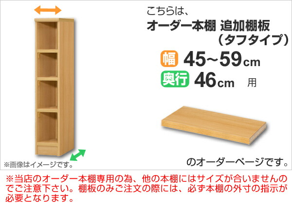 専用追加棚板 タフタイプ オーダー本棚 奥行46cm 本体幅45-59cm用 ( オーダーメイド セミオーダー 奥行46cm用追加棚 幅45-59cm 本棚 多目的ラック )