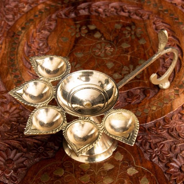 5口のオイルランプ&香立て / ディヤ ディワリ 灯心 プージャ プジャ インド お香立て 礼拝 インセンス アジア エスニック