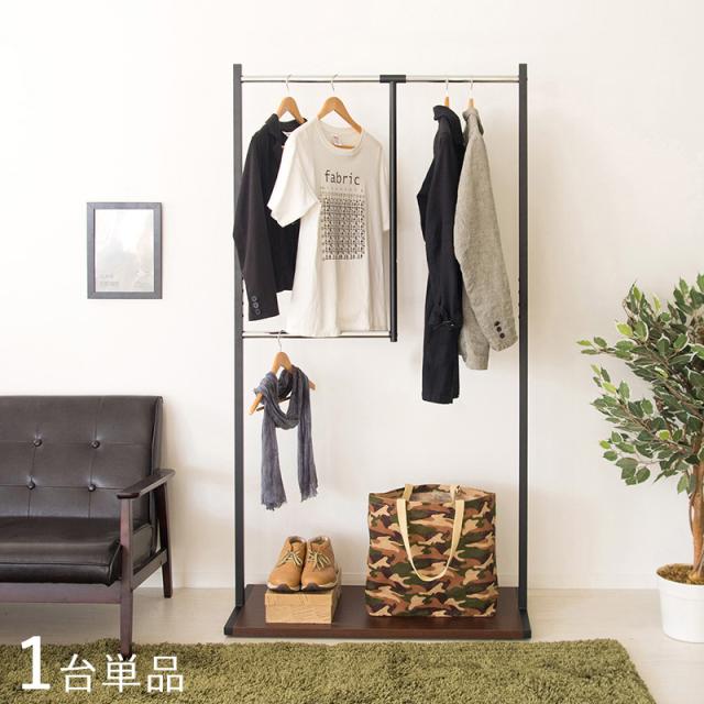 PRI-HR ワイドハンガーラック【1台単品】 ブラウン×ブラック色 パーティクルボード スチール 幅90×奥行き40×高さ179cm 組立て商品 Wバー コートハンガー衣類ハンガー コート掛け 洋服掛け 衣類収納