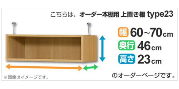 専用 上置き棚 標準棚板 type23 オーダー本棚 奥行46cm 幅60-70cm用 ( オーダーメイド 天井つっぱり 収納ラック 本棚 セミオーダー )