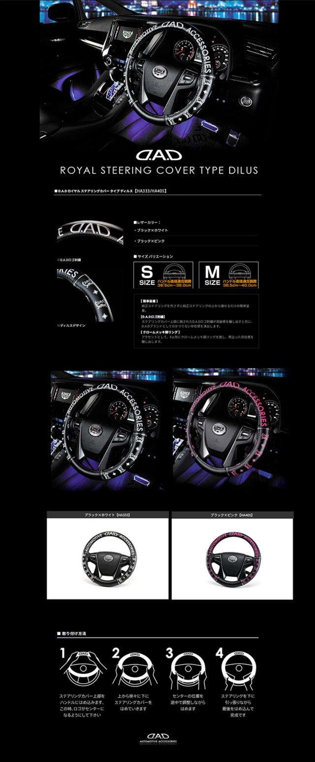 【出荷実績50万本】 D.A.D ロイヤルステアリングカバー タイプディルス(DILUS)ブラック HA333 ハンドルカバー DAD ギャルソン GARSON