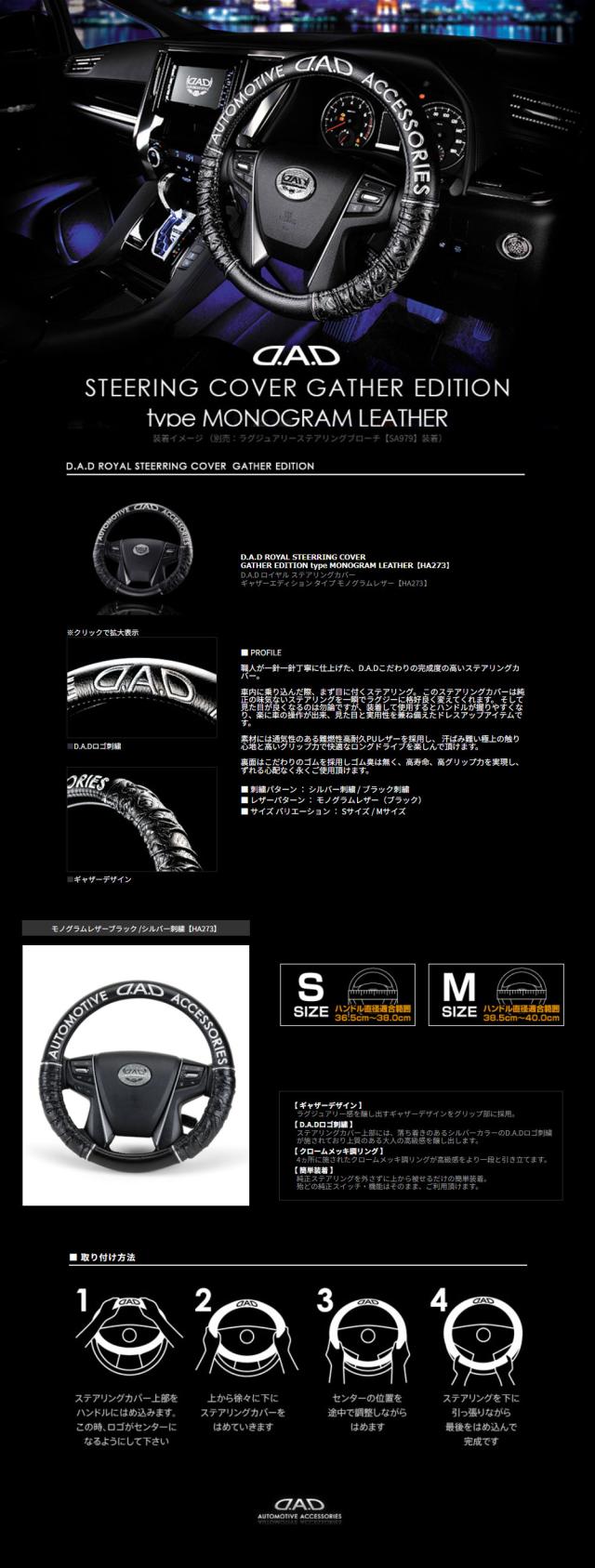 【出荷実績50万本】D.A.D ロイヤルステアリングカバー ギャザーエディション モノグラムレザー HA273 ハンドルカバー DAD ギャルソン GARSON