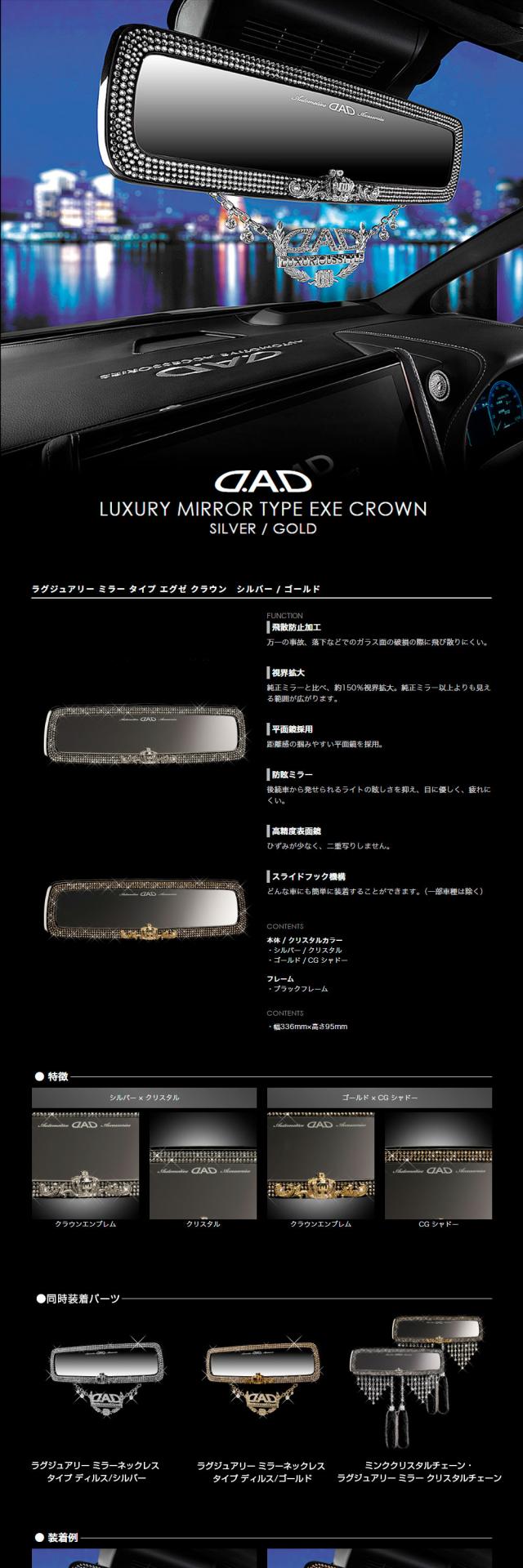 D.A.D LUXURY ミラー タイプ EXE クラウン HF088 / HF091 GARSON ギャルソン DAD 防眩ミラー 飛散防止