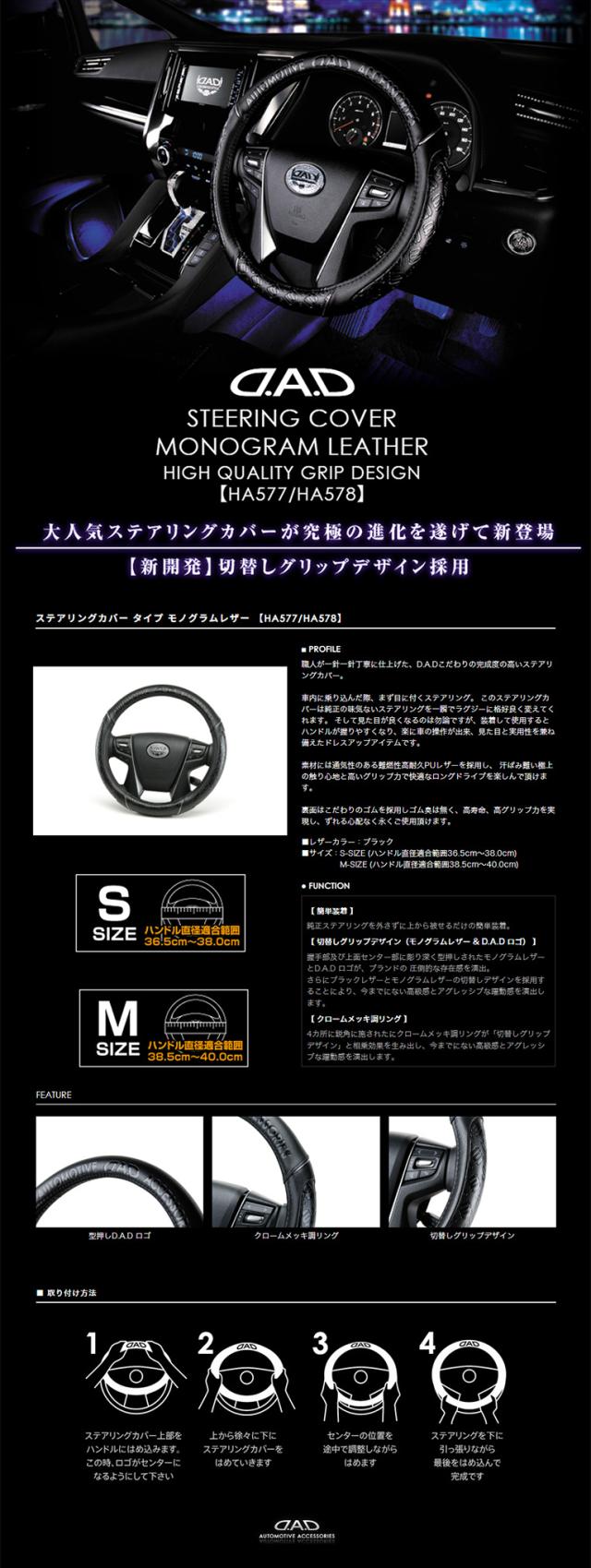 【出荷実績50万本】D.A.D ステアリングカバー タイプ モノグラムレザー HA577/HA578 ハンドルカバー DAD ギャルソン GARSON