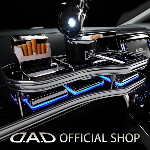 D.A.Dフロントテーブルに標準装備されているコースターを素敵な光で演出し、大人のナイトクルージングにふさわしい車内空間を創るオプショナルパーツです。不思議な光りの理由は、コースター下3ヶ所に穴をあけてテーブルの裏面に本体を取り付ける事により表面からは配線等が見えないからです。その結果、幻想的で豪華なムード溢れる光の演出に成功しました。また、その光はコースターの周り以外には当たらないので運転の邪魔になることはありません。