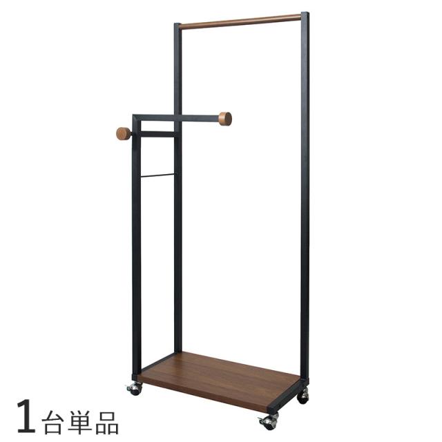 PRN-HR ワイドハンガーラック【1台単品】 ブラウン×ブラック色/2色あり 天然木 突き板 スチール 幅60×奥行き37.5×高さ145cm ダブルハンガー 組立て商品 コートハンガー
