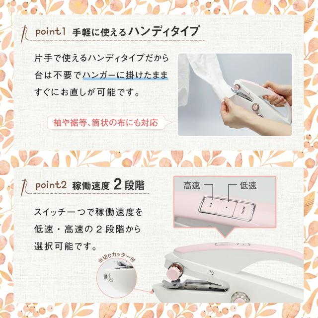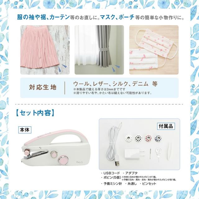 ハンディミシン フィンリー finry ミシン 小型 ハンディタイプ 軽い チェーンステッチ 初心者 簡単 手作りマスク オリジナル ハンドメイド ポーチ 小物作り 裾 袖 カーテン 手芸 ソーイング 趣味 コンパクトミシン ホワイト ピンク 入園準備 入学準備 体操服袋 ズック袋 ステイホーム 自粛期間 在宅 お家 お家時間 手作り 縫う 手直し お直し 練習 小型ミシン ミニミシン 低速 高速 選べる USB充電 乾電池 初心者でも簡単 使い方 おすすめ 人気 女性 女の子 効果 比較 ランキング 誕生日 母の日 クリスマス ギフト プレゼント 贈り物 口コミ クチコミ レビュー 評判 通販 Finry MEH136 4532141147499