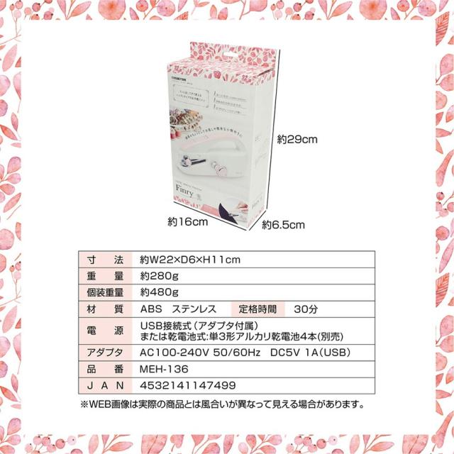 ハンディミシン フィンリー MEH-136 finry ミシン 小型 ハンディタイプ 軽い チェーンステッチ 初心者 簡単 手作りマスク 小物作り 手芸 ソーイング 趣味 ![]() ![]() ![]() ![]() ![]() ![]() | ||||
