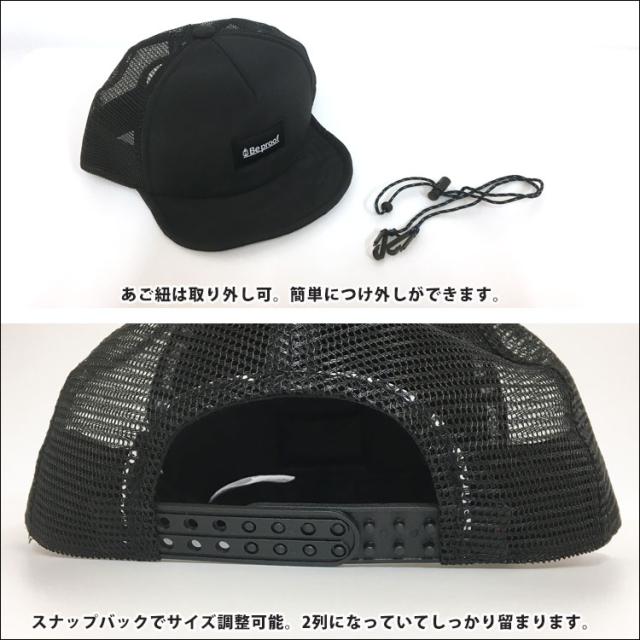 ・内側はメッシュで汗止め部分は吸水速乾テープを使用★2列のスナップバックでサイズ調整!